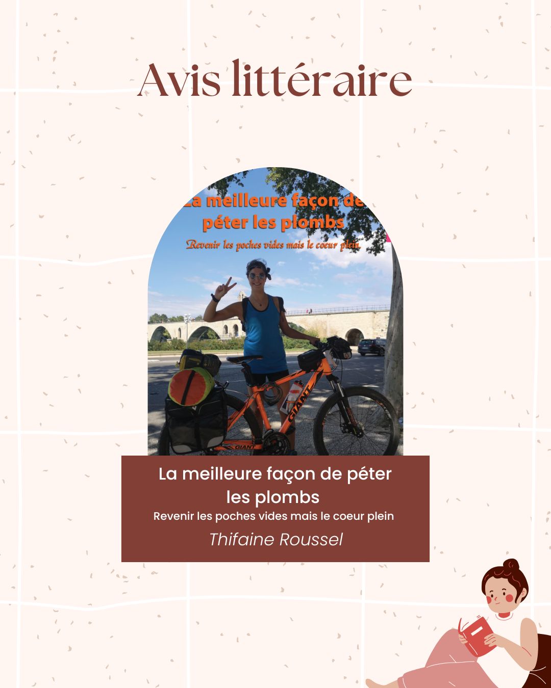 L’image présente un avis littéraire sur un livre intitulé « La meilleure façon de péter les plombs – Revenir aux poches vides mais le cœur plein » écrit par Thifaine Roussel .